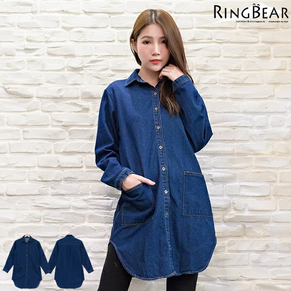 None, 牛仔外套--輕鬆休閒中長款後打摺雙口袋弧狀下擺牛仔外套/長版上衣(藍XL-4L)-J298眼圈熊中大尺碼。在樂天市場的眼圈熊S-7L大小尺碼衣褲專賣有最棒的商品,是您省錢的最佳選擇。